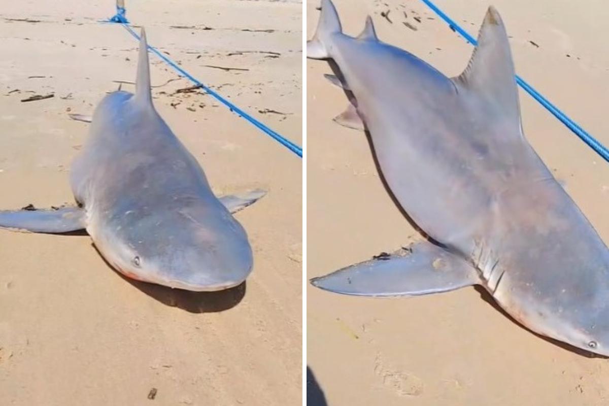Tubarão cabeça-chata é encontrado por pescadores em praia de Fortaleza; veja vídeo
