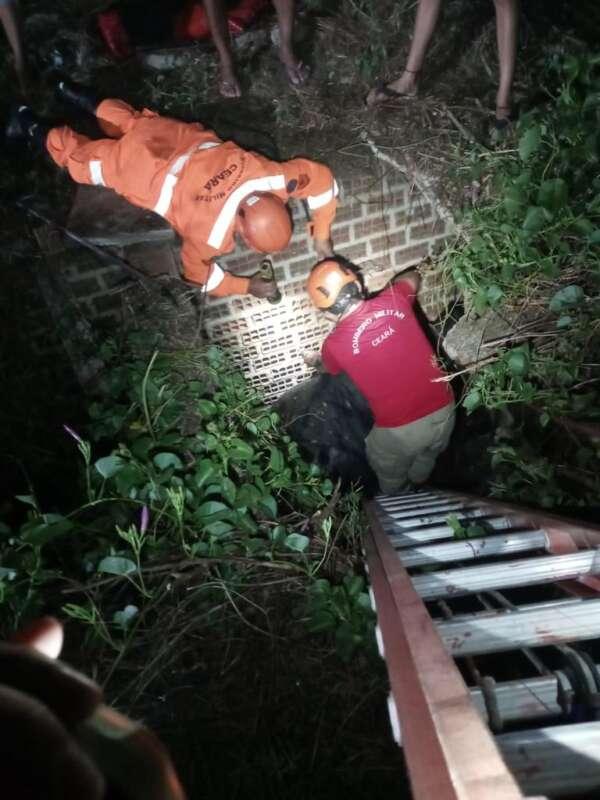 Uma vaca de 400 kg foi resgatada de uma fossa séptica, com apoio de uma retroescavadeira, em Quixadá, nessa quarta-feira (13). Os bombeiros salvaram o animal sem nenhum ferimento.