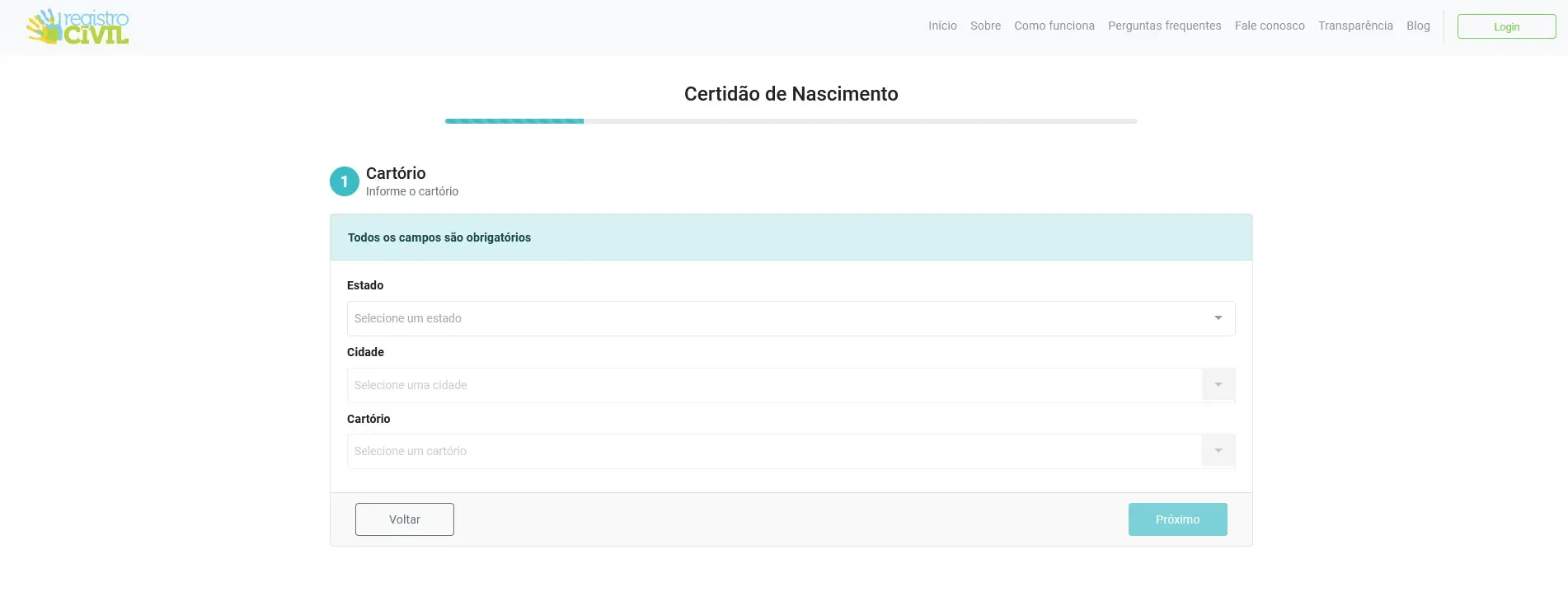 Esse processo pode ser realizado inteiramente pela internet, com o pagamento de taxas que variam de acordo com o estado de emissão do documento. Para isso, basta acessar o Portal Oficial do Registro Civil, idealizado pela Associação dos Registradores de Pessoas Naturais do Brasil (ARPEN Brasil), e seguir o passo a passo abaixo.