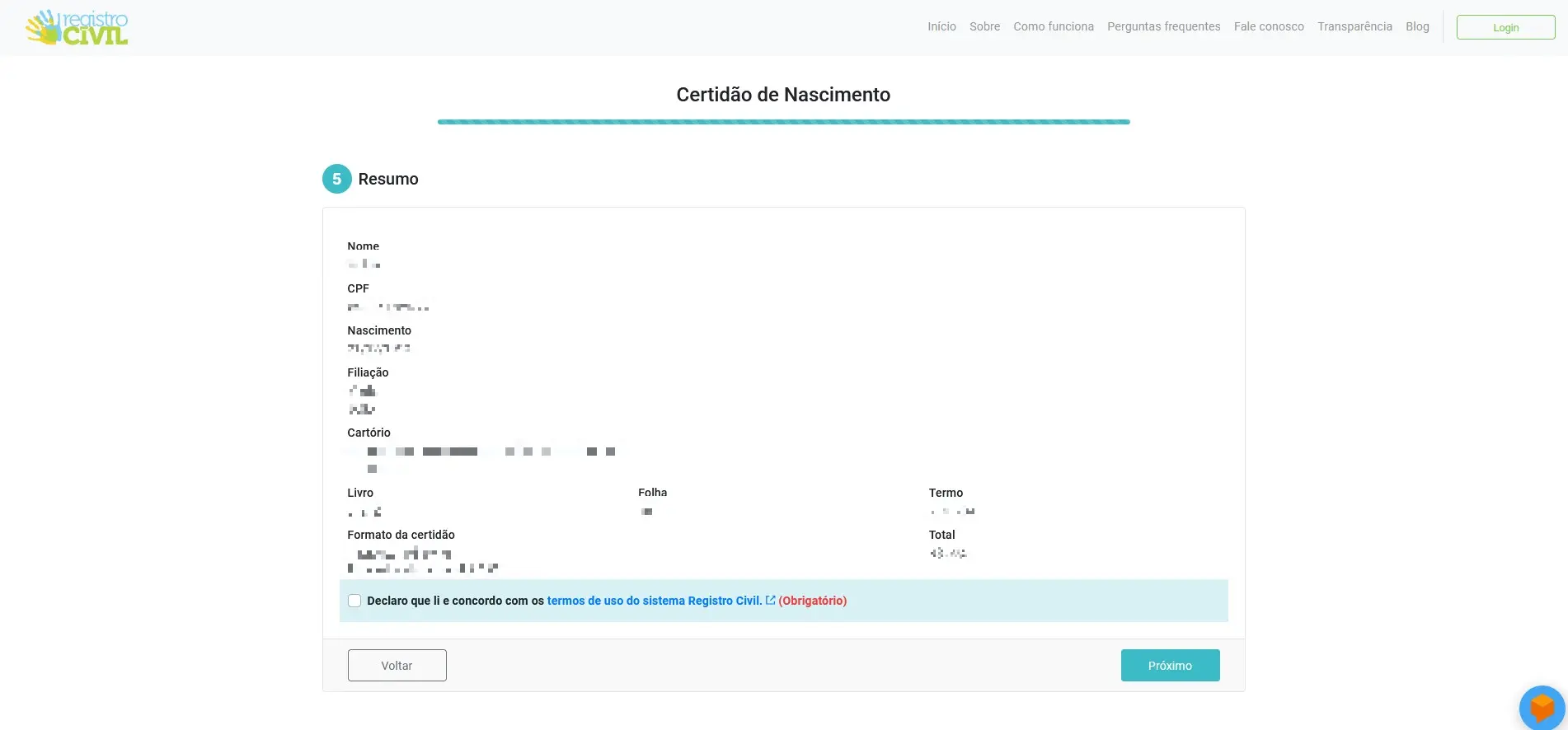 - Confira as informações, leia os termos de uso e clique no box para concordar com eles;