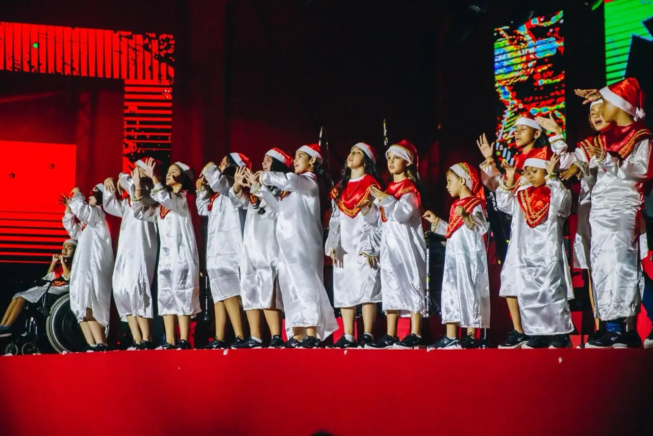 A celebração ainda ofereceu o espetáculo do tradicional Coral da Luz com as crianças entoando os principais clássicos natalinos direto das sacadas do Hotel Excelsior.