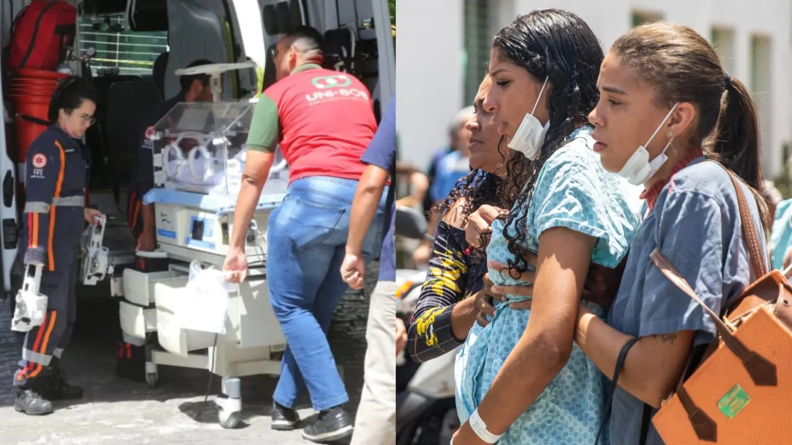 Veja fotos de bebês e mães sendo resgatados de incêndio no Hospital César Cals
