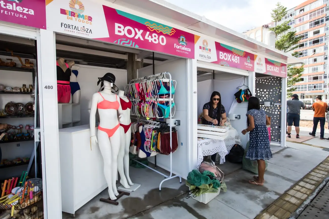 Os boxes da nova Feirinha da Beira-Mar foram entregues pela Prefeitura de Fortaleza (PMF) e começaram a funcionar na manhã deste sábado (30). Permissionários dos novos equipamentos já receberam clientes para vender roupas, artesanatos e outros artigos.