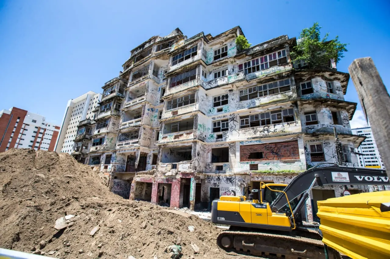 Prédio está sendo "desconstruído" desde o último dia 5 deste mês. Obra de demolição deve durar 90 dias