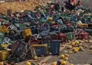 Vídeo: caminhão com frutas tomba em Santa Quitéria (CE) e deixa feridos