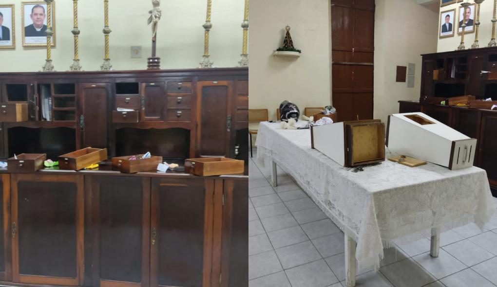 Imagens feitas no local mostram gavetas reviradas e gazofilácios arrombados.