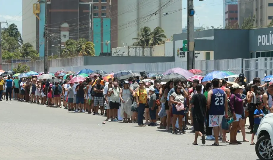 Em imagens registradas pelo Diário do Nordeste, é possível observar centenas de pessoas em uma longa fila, enfrentando o forte sol da capital cearense. Algumas pessoas tentavam se proteger do sol com guarda-chuvas, chapéus e óculos escuros. Outros buscavam sombras em calçadas.