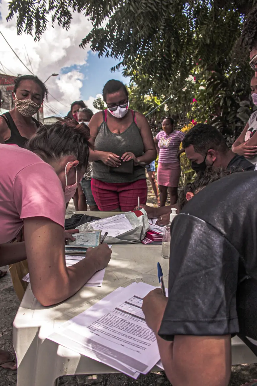 Coletivo Olhando pra Frente distribuiu 200 cartões-alimentação de R$ 300 para moradores de baixa renda no bairro Jangurussu