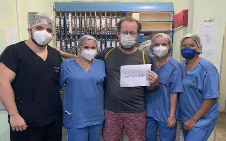 "Exatamente no 10º dia, no finalzinho da tarde, uma das técnicas estava trocando o meu acesso quando, de repente, um rosto muito conhecido apareceu detrás da porta: minha esposa. Eu não aguentei e chorei", relata.