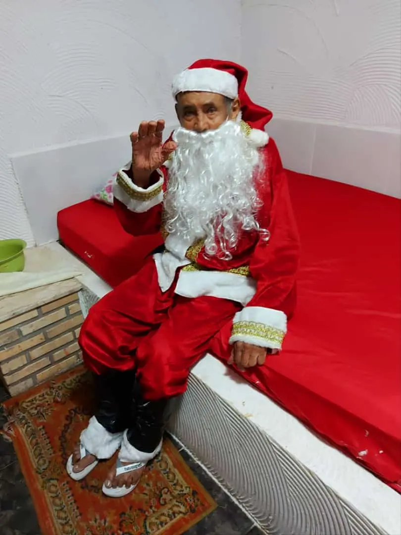 Idoso de 101 anos se veste de Papai Noel para comemorar Natal em comunidade no bairro Jacarecanga