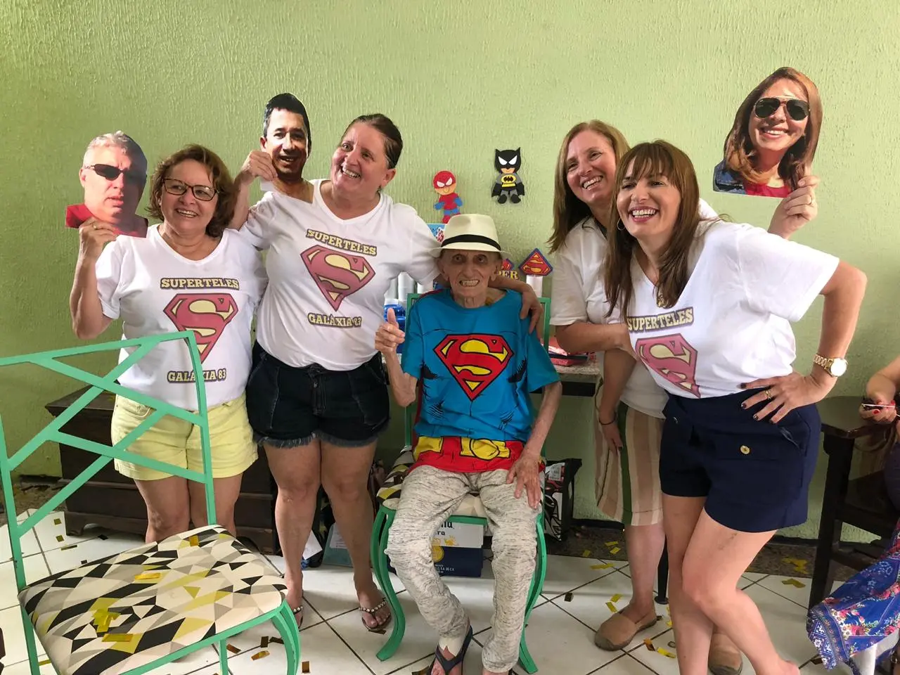 José Teles, de 84 anos, enfrenta um câncer raro no rim há três anos, mas a doença nunca foi motivo para tristeza. Acompanhado da filha Celina Freire, o aposentado diverte quem o vê nas sessões de quimioterapia. Para amenizar as dificuldades do tratamento, ela passou a vestir o pai com roupas dos famosos super-heróis.