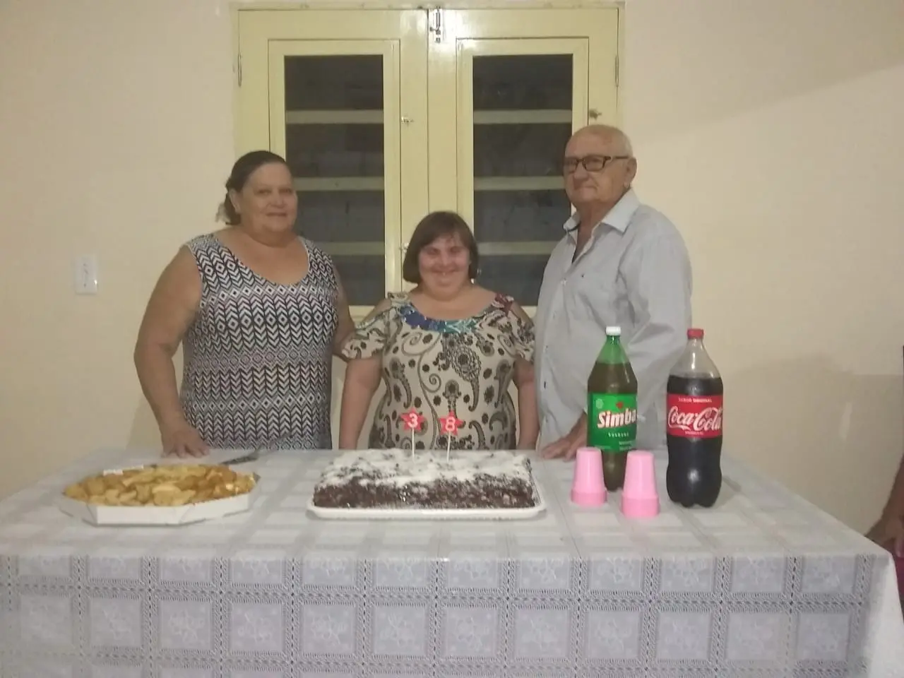 Na foto, a familia comemora o aniversário de 38 anos de Sandra.