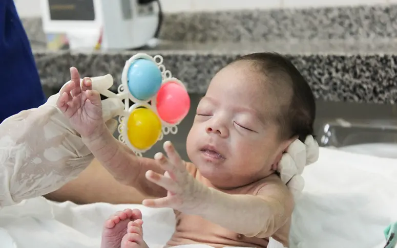 O bebê nasceu como prematuro extremo, quando a mãe estava em coma induzido no Hospital Geral Dr. César Cals. Mesmo depois da alta da mãe, ele ainda precisou ficar na UTI Neonatal