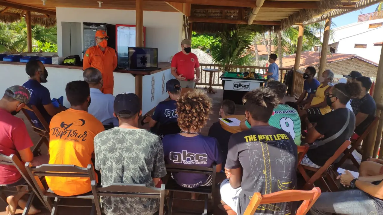 Kitesurfistas e instrutores recebem aulas teóricas e práticas do Corpo de Bombeiros Militar do Ceará (CMBCE)
