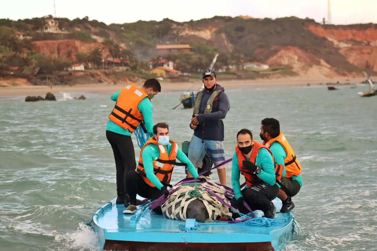Duas equipes, compostas por biólogos e voluntários, ofereceram suporte durante o transporte. A Polícia Militar do Ceará, através do Regimento de Polícia Montada (RPMON) também esteve presente no caminho até a Praia da Peroba. Além do efetivo, participaram da transferência o Batalhão de Policiamento de Meio Ambiente (BPMA), da Secretaria de Meio Ambiente do Estado do Ceará, o Corpo de Bombeiros e a Prefeitura de Icapuí. A equipe para a ação começou os preparativos as 19h30, porém teve inicio por volta das 22h da última quarta-feira (9) e se encerrou nas primeiras horas desta quinta-feira (10).