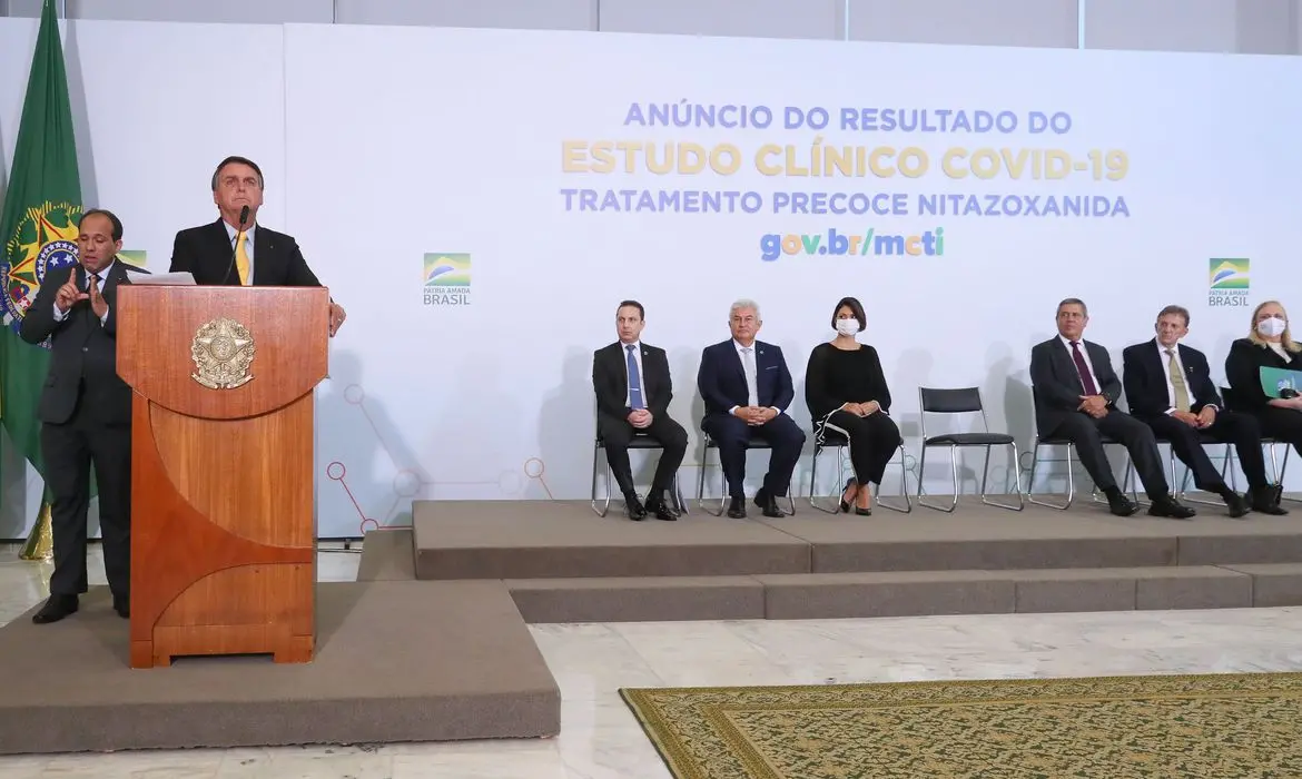 O presidente Jair Bolsonaro também comemorou o resultado da pesquisa e destacou a eficácia da nitazoxanida no tratamento da Covid-19.