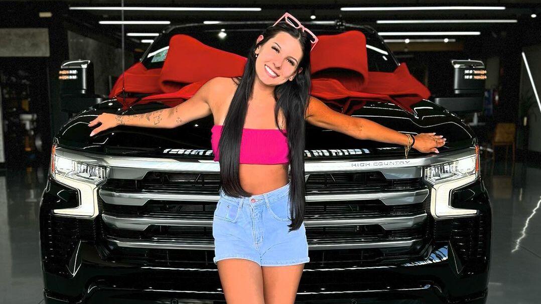 “Eu estava querendo essa caminhonete há muito tempo, e aí eu tirei minha carteira e falei para o meu pai: ‘Pai, agora que tirei minha carteira de motorista, eu posso ter minha caminhonete’. E ela está aqui atrás de mim!”, celebrou ela.