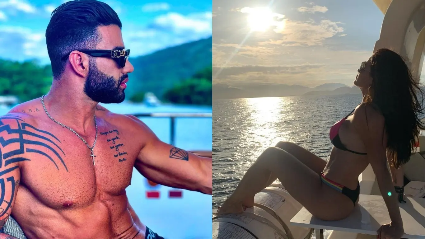 Gusttavo e Andressa foram flagrados juntos por um grupo de amigos enquanto passeavam de iate por Angra dos Reis (RJ).