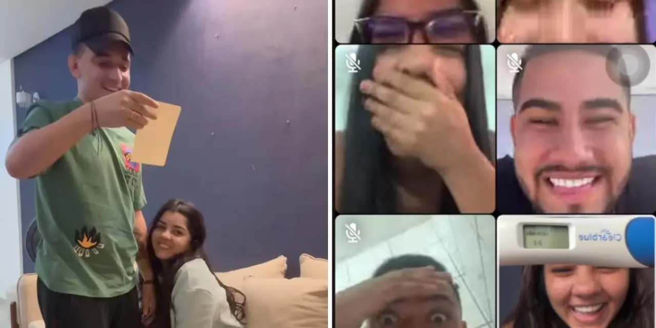 Ary divulgou trechos da videochamada que fez com as pessoas próximas para contar a novidade. A reação dos familiares e amigos ao ver o teste de gravidez foi unânime: sorrisos e expressões de surpresa e felicidade.