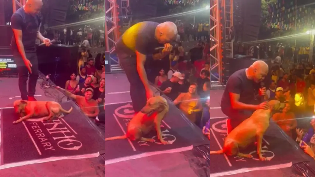 Cantor de arrocha viraliza ao receber cadela no palco durante show; veja vídeo