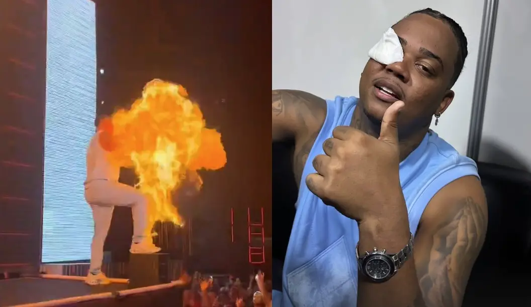 O acidente aconteceu durante apresentação da música "Só Rock". O trapper caminhava pelo palco do evento e, ao parar em uma ponta da passarela em que percorria, ele foi atingindo pelo fogo no rosto.