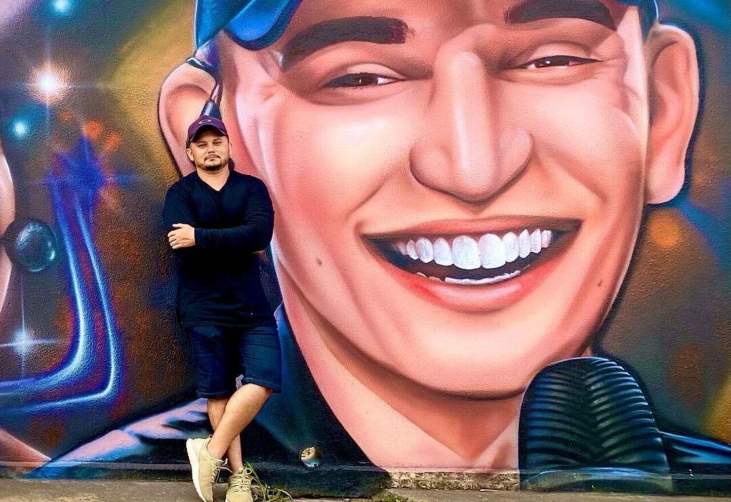 "Pelas redes sociais, eles notaram meu trabalho. O mentor do grafite veio pra cá. A gente ia fazer um mural sertanejo que é o forte de lá. Acabei pedindo para inserir um nome do forró, o João Gomes. Como escuto bastante Bruno e Marrone, eles também foram escolhidos para serem homenageados", detalha Leandro Marques.