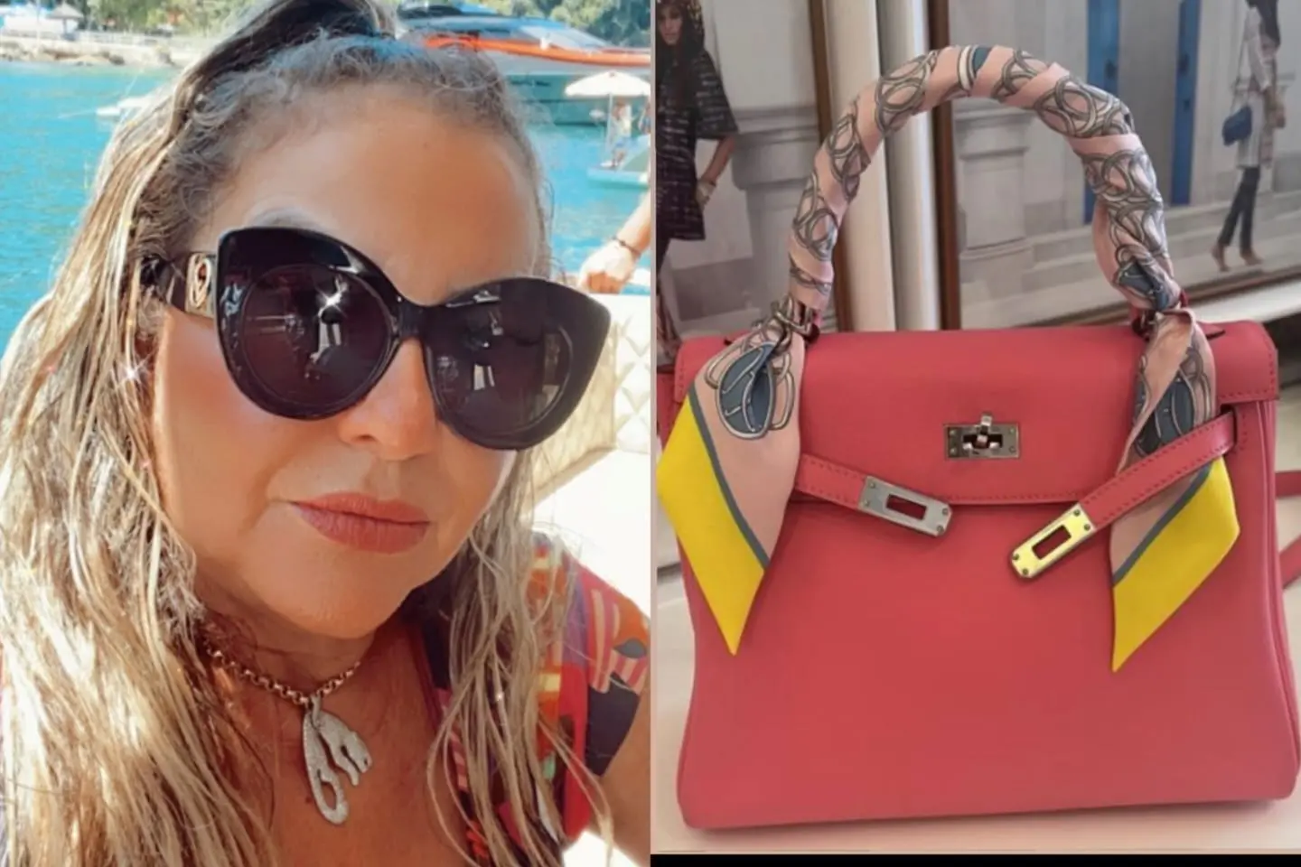 A bolsa é de cor rosa com detalhes amarelos na alça; Dona Bil não revelou o valor do acessório, mas sites especializados apontam que, dependendo do modelo e edição, a peça pode custar mais de R$90 mil.