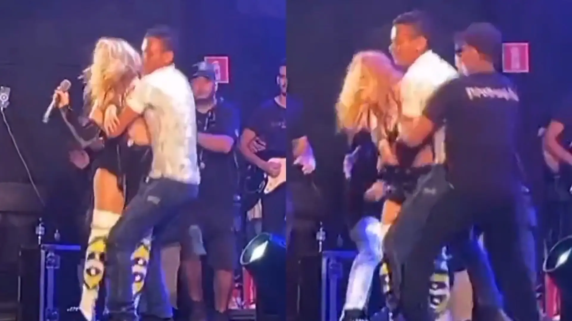 No palco, seguranças e dançarinos da cantora ficaram assustados com a invasão