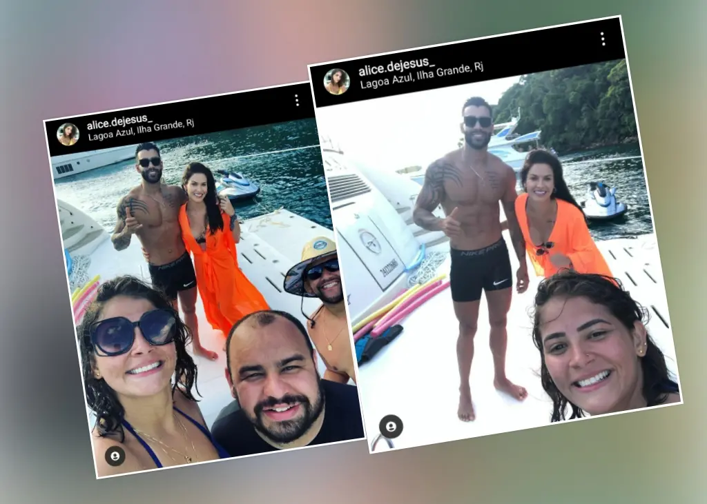 Já imaginou sair de casa com os amigos para pegar aquela praia e encontrar Gusttavo Lima e Andressa Suita juntos? Um grupo de amigos encontrou os dois, neste domingo (17), em Angra dos Reis (RJ). A empresária Alice de Jesus postou uma série de vídeos e fotos do encontro com os famosos. "O que dizer? Passamos o dia ao lado desse casal mais que especial", escreveu ela em stories.