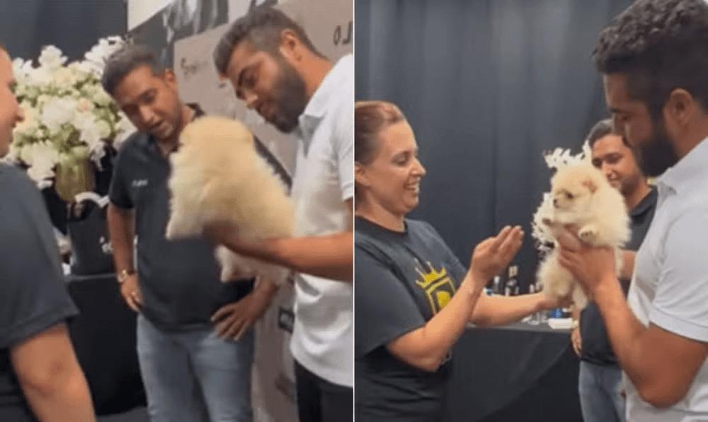 Uma fã surpreendeu o cantor Henrique, dupla do cantor Juliano, ao presentear o sertanejo com um cachorro, na noite desse sábado (4). Antes de show em Santos (SP), o artista reagiu com espanto ao receber o animal da raça Zwergspitz, também conhecida como Lulu da Pomerânia.