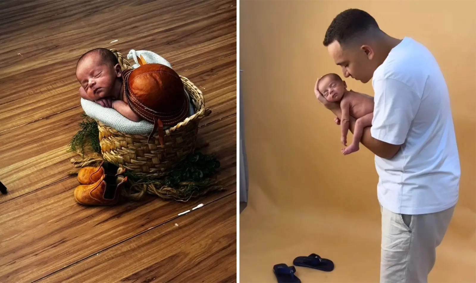 O ensaio "newborn" do bebê foi nessa terça-feira (30)