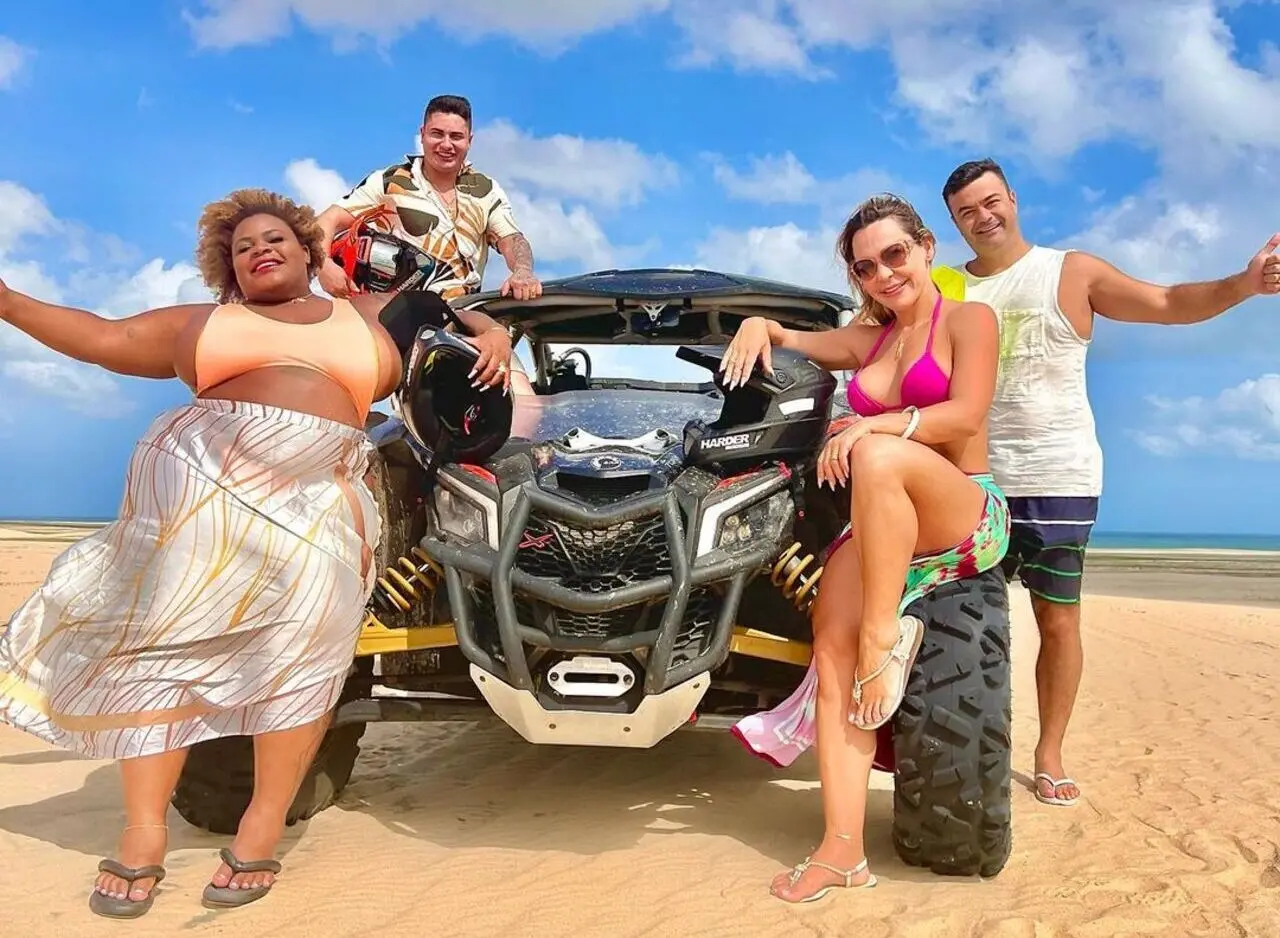 Em Jericoacoara, a carioca e o marido são acompanhados por um casal de amigos que foram padrinhos do casamento.