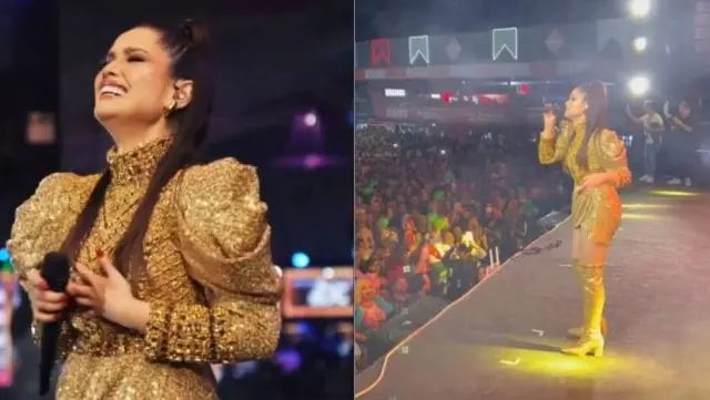 A cantora Juliette se emocionou durante o primeiro show solo em sua cidade natal, em Campina Grande, na Paraíba. Ela se apresentou no tradicional São João do município, na noite desta quinta-feira (23).