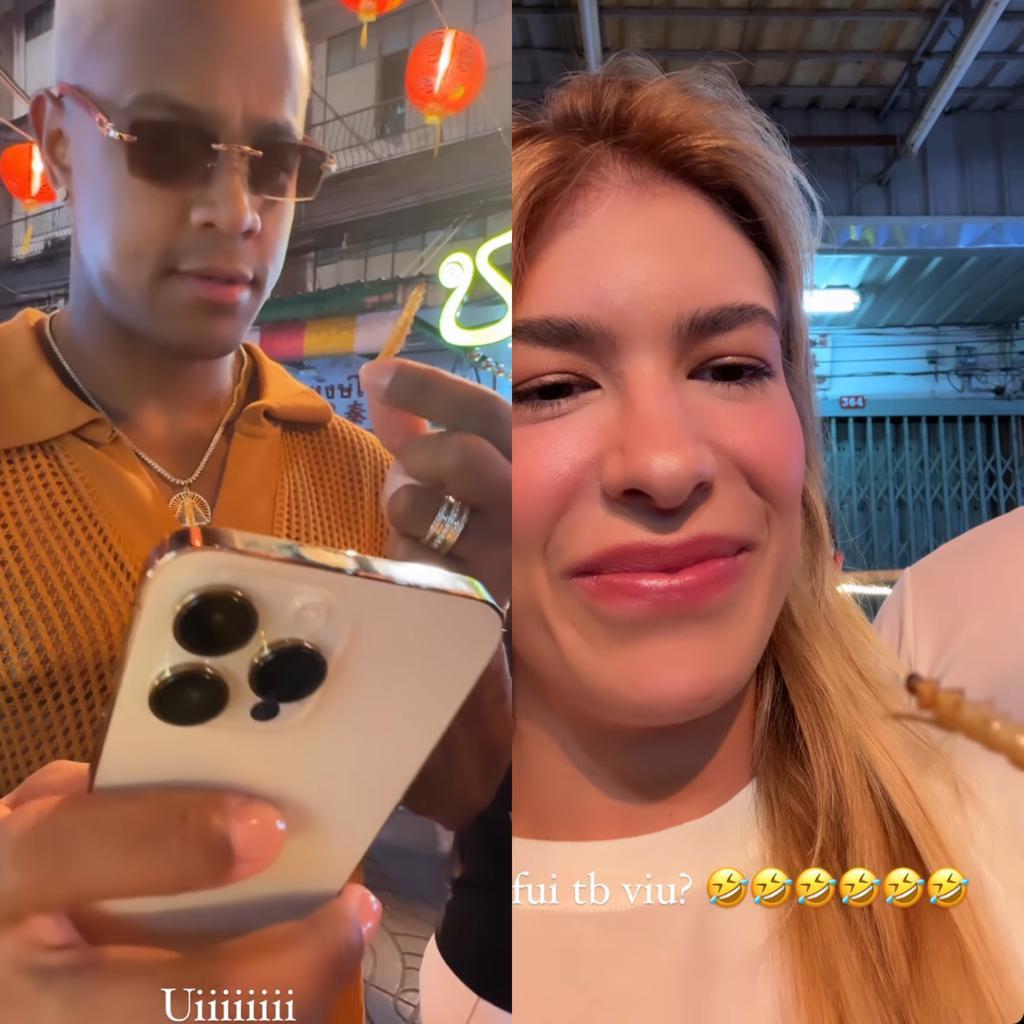 Léo Santana e Lore Importa comem minhoca durante viagem à Tailândia