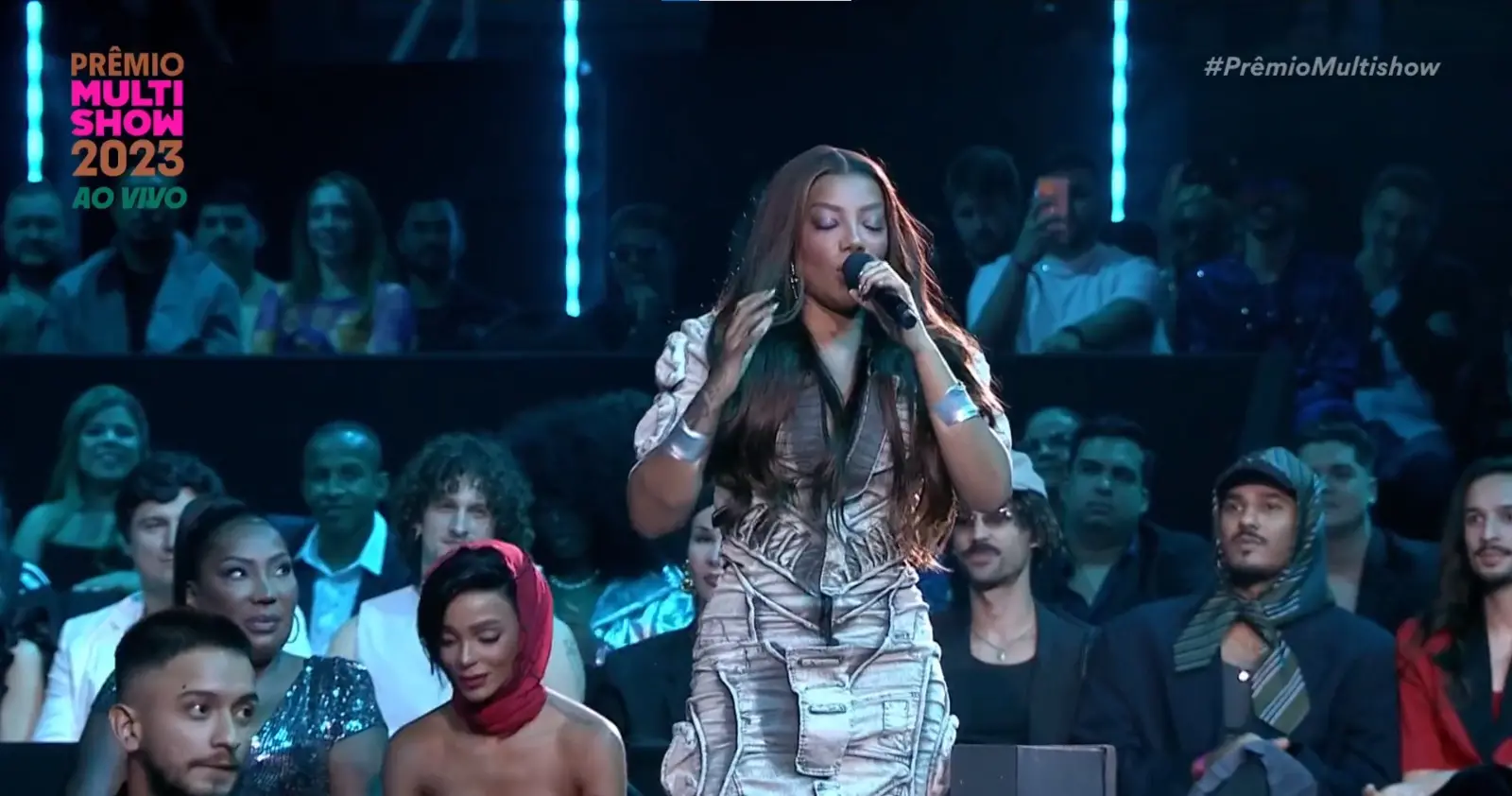 Ludmilla canta Hino Nacional no Prêmio Multishow após erro em apresentação na F1; veja vídeo