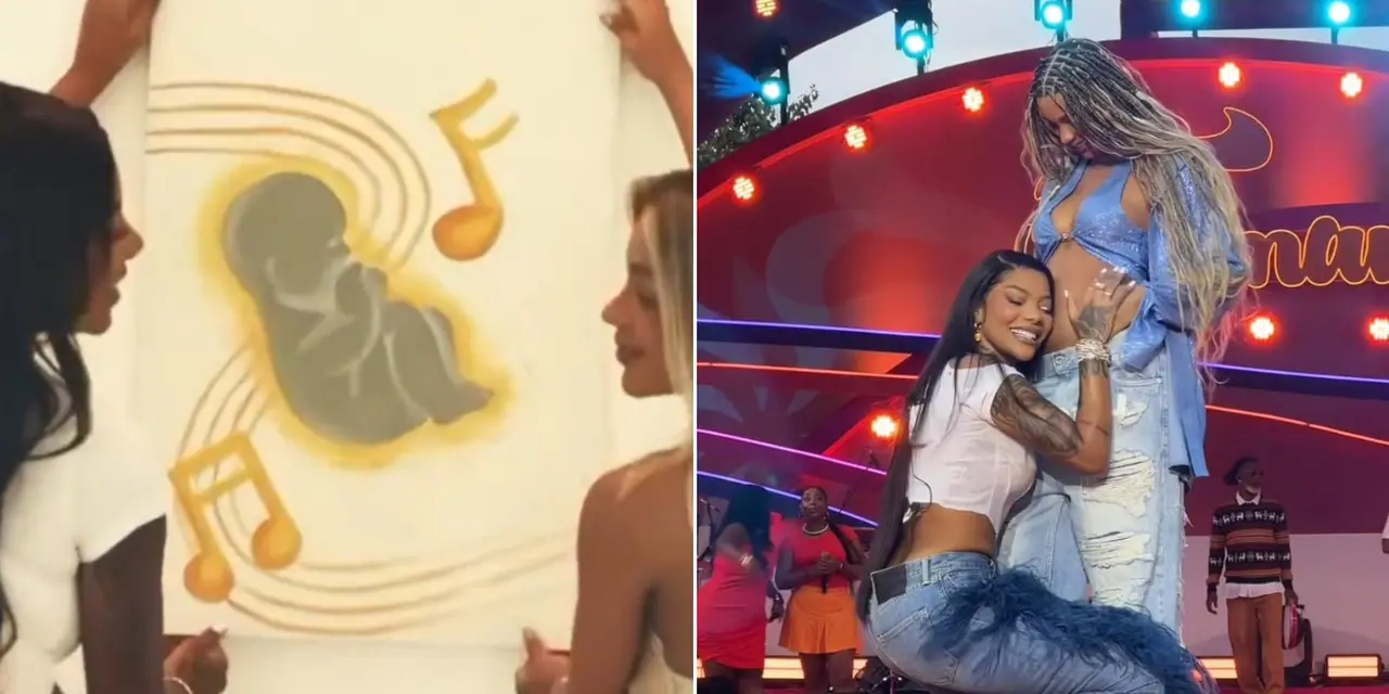 Em um vídeo exibido no show, Ludmilla aparece pintando um quadro e Bruna dançando, grávida. Ao fim, a pintura é relevada: um bebê.