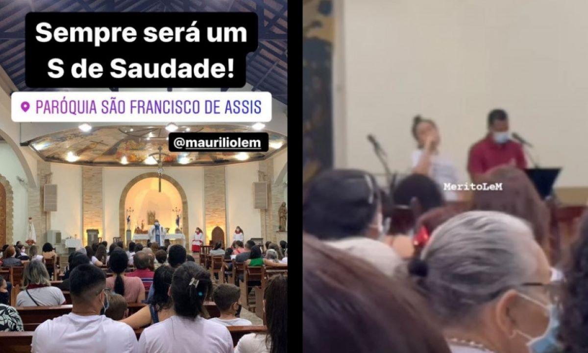 Luíza cantou uma música para os presentes na missa. No stories do Instagram, a mãe de Maurílio, Odaisa Delmonte, compartilhou registros da missa.