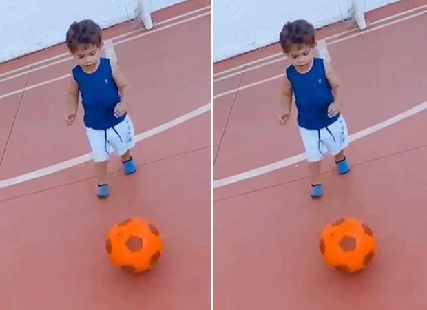 Mãe de Marília Mendonça compartilha vídeos do filho da cantora jogando bola no condomínio