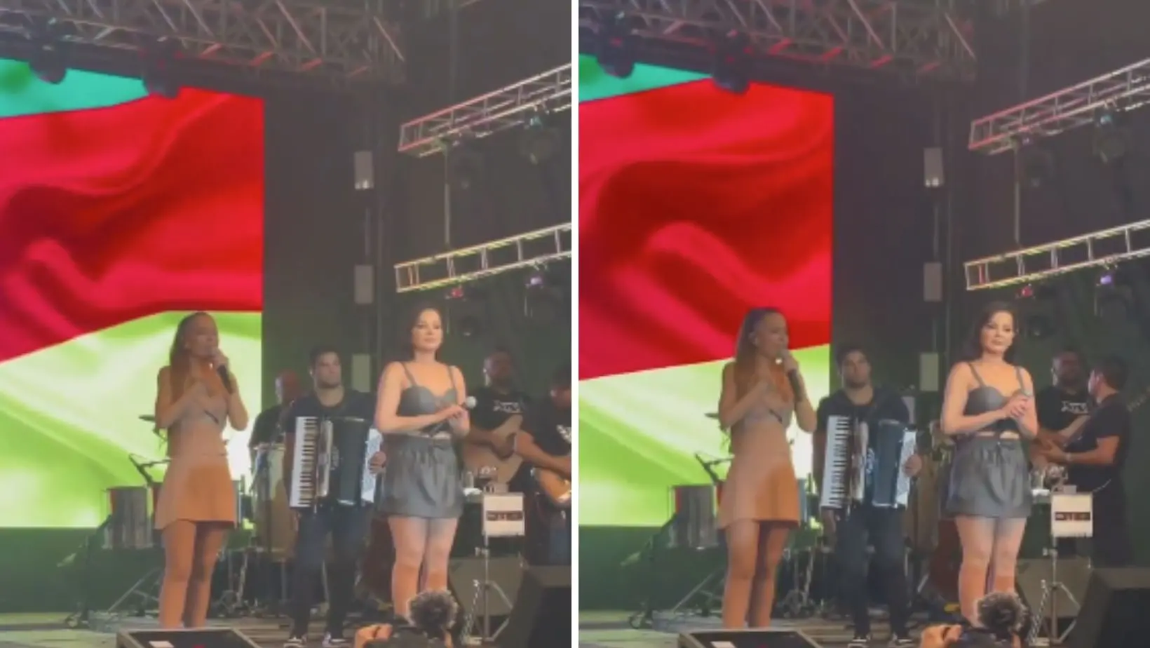 “Desculpa, a gente não podia deixar de vir aqui hoje. Não podia deixar de fazer o nosso papel. Com todo respeito, sei que não é fácil, mas a gente não foge à luta”, disse uma das irmãs, sendo aplaudida pelo público que acompanhava o show.