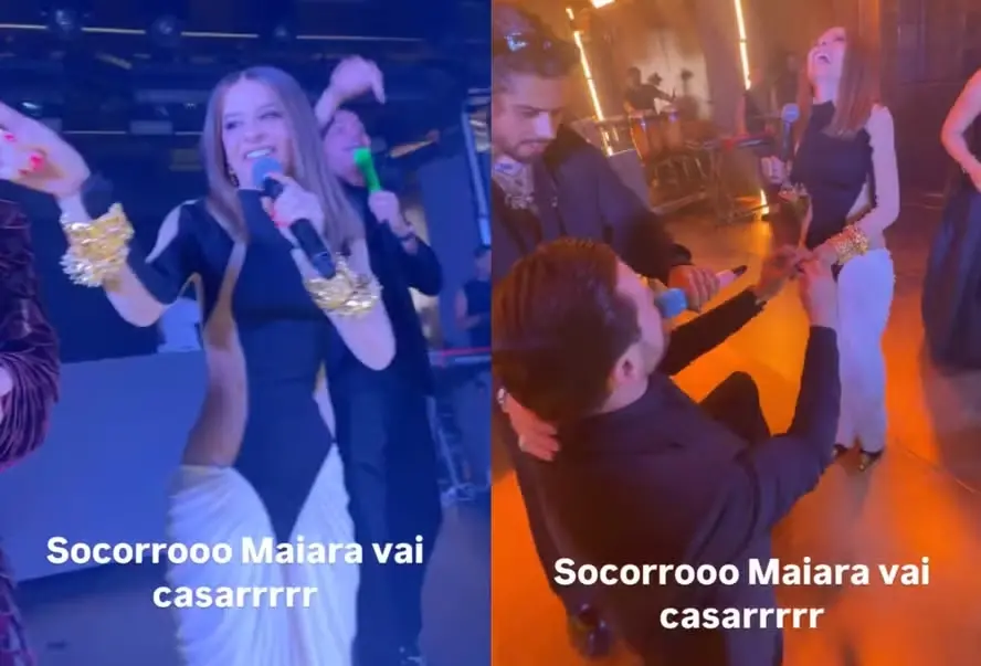 Quem introduziu o momento do pedido foi o jornalista Leo Dias. Ele estava no palco quando anunciou: "Maiara vai casar antes da Maraisa! Vamos fazer o noivado hoje?"