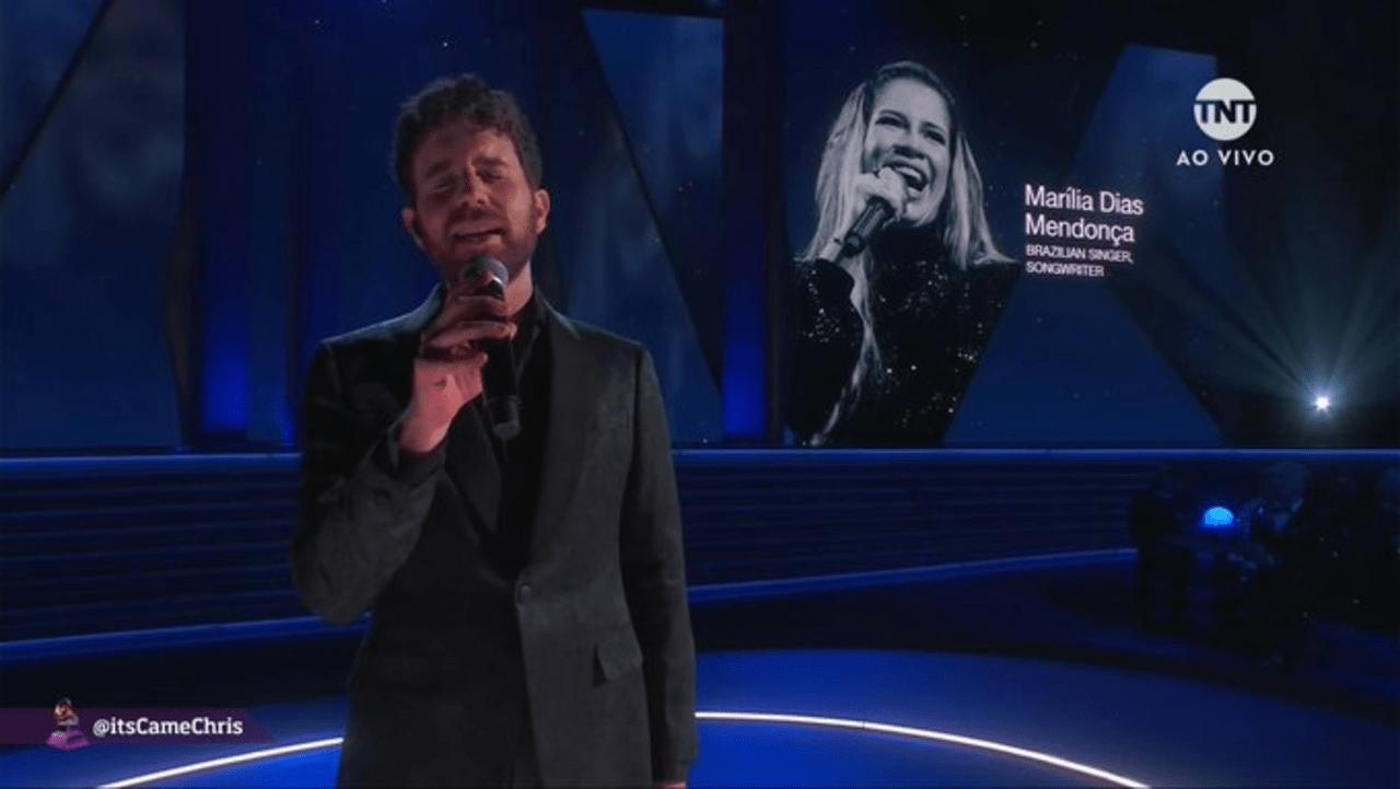 Marília Mendonça apareceu no telão com os demais artistas e executivos da indústria que morreram nos últimos meses, como Taylor Hawkins, o baterista do Foo Fighters, e Charlie Watts, dos Rolling Stones.