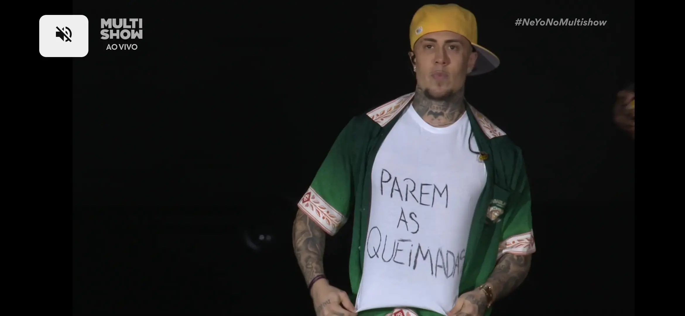 Durante o show do cantor Ne-Yo no Rock in Rio, na noite desse domingo (22), o paulista MC Daniel subiu ao palco de surpresa. Ele cantou a música "Vamo de Pagodin" e mostrou uma camisa com a frase “Parem as queimadas” antes de sair da apresentação.