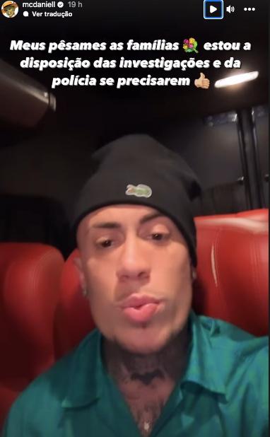 O cantor MC Daniel se pronunciou, na noite de segunda-feira (20), sobre a confusão que aconteceu após um show dele, na sexta-feira (17), em Campinas, que resultou na morte de um homem, o professor Wellington Mariano, de 26 anos. Ele prestou condolências aos familiares da vítima e se mostrou à disposição da polícia para investigações.