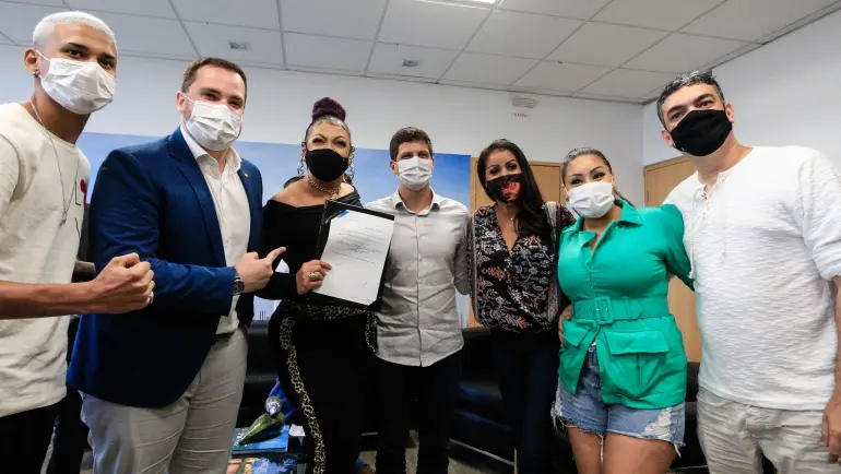 "Vocês são influenciadores nas comunidades, nos bairros da cidade, na juventude. Como a gente trabalha para o brega ser a porta de entrada para ajudar a uma criança, um jovem, tá dentro da escola. A gente tem que unir tudo isso, com muita seriedade e muito compromisso", explicou.