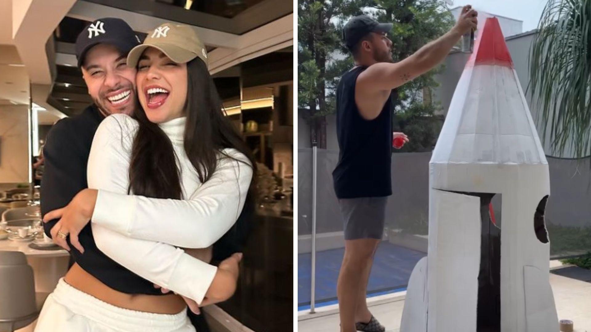 Murilo Huff e Gabriela Versiani constroem foguete para filho do cantor com Marília Mendonça
