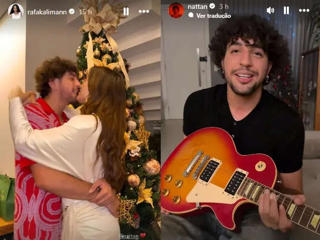 O cantor cearense Nattan utilizou as redes sociais, neste Natal, para assumir o namoro com a atriz e ex-BBB Rafa Kalimann e para revelar o presente que ganhou da amada: uma guitarra autografada pelo ídolo, o cantor Djavan. O casal celebrou o Natal com a família de Rafa, em Uberlândia (MG).
