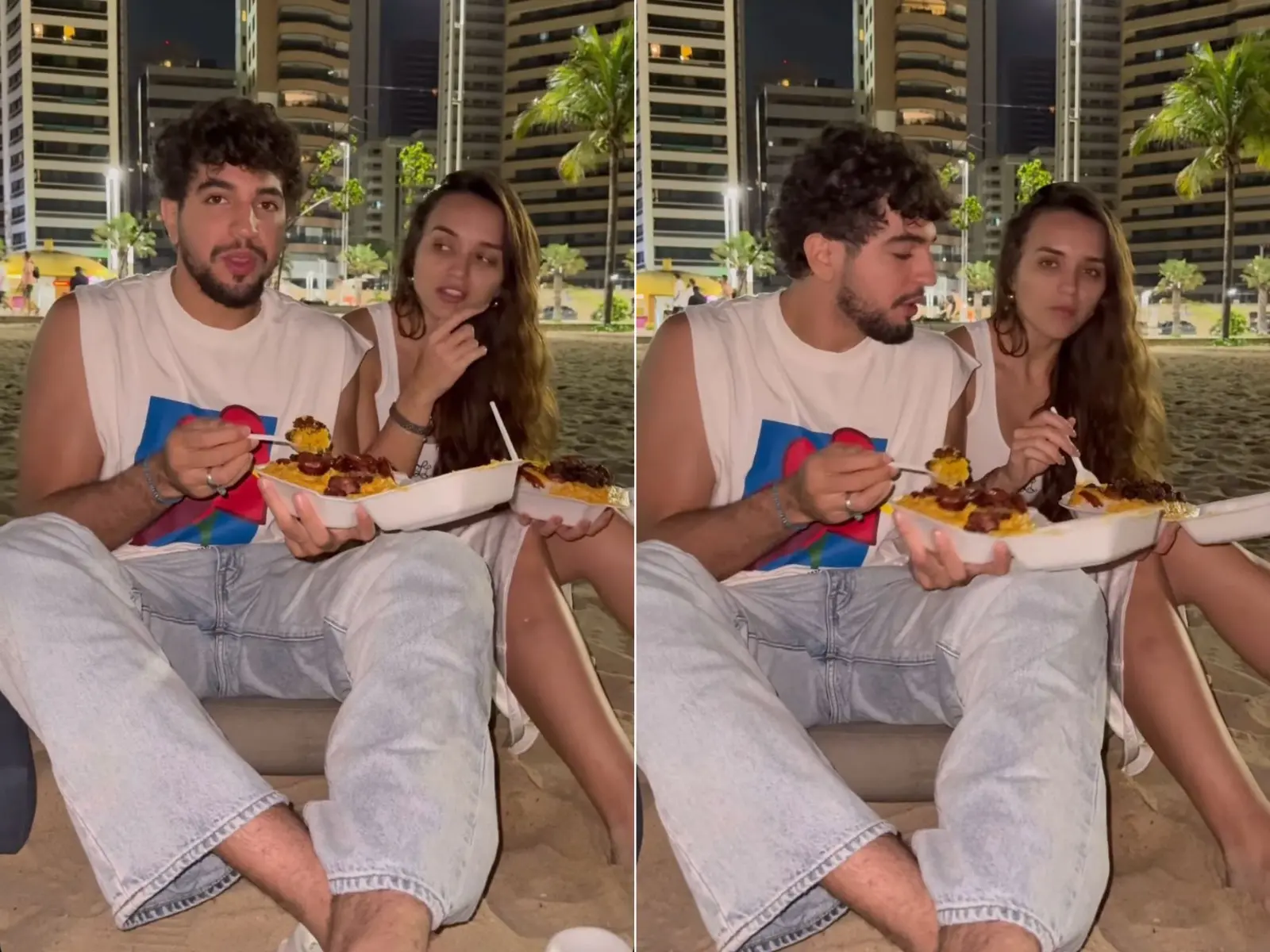 Nattan e Rafa Kalimann comem 'pratinho' na orla de Fortaleza; veja vídeo