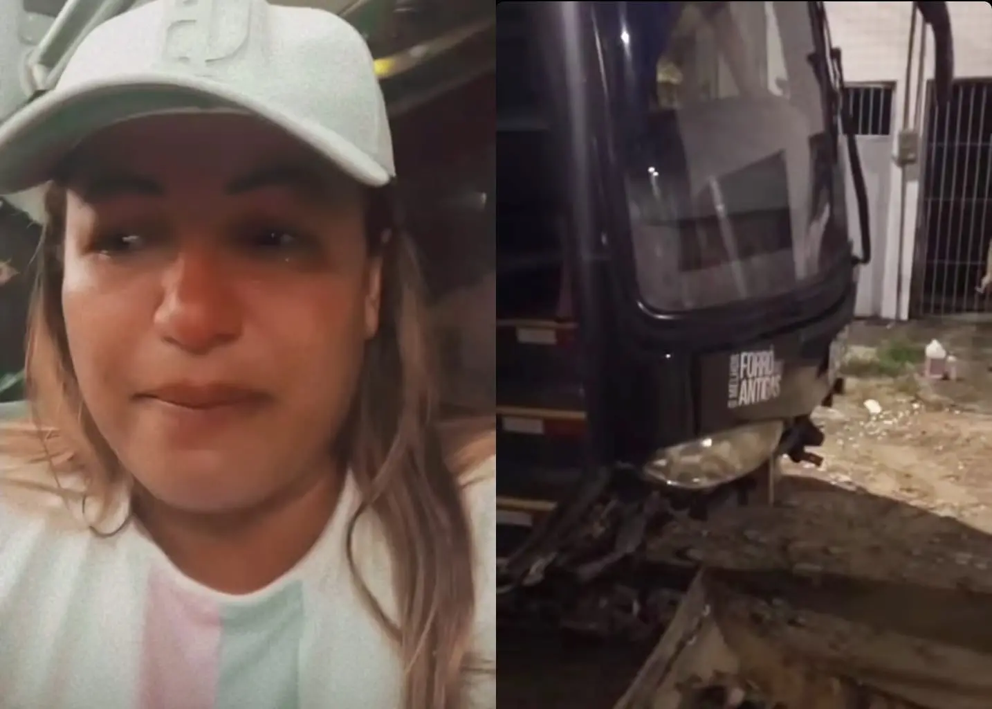 Ônibus da cantora Luciene perde freio e sofre acidente em Recife, a caminho de show de São João