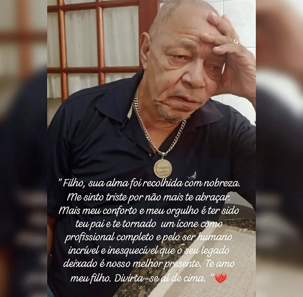 “Filho, sua alma foi recolhida com nobreza, me sinto triste por não mais te abraçar; mais meu conforto e meu orgulho é ter sido seu pai e ter te tornado um ícone, um profissional completo, um pai maravilhoso para os seus, um filho sensacional, um amigo extraordinário e principalmente pelo ser humano iluminado e inesquecível", escreveu.