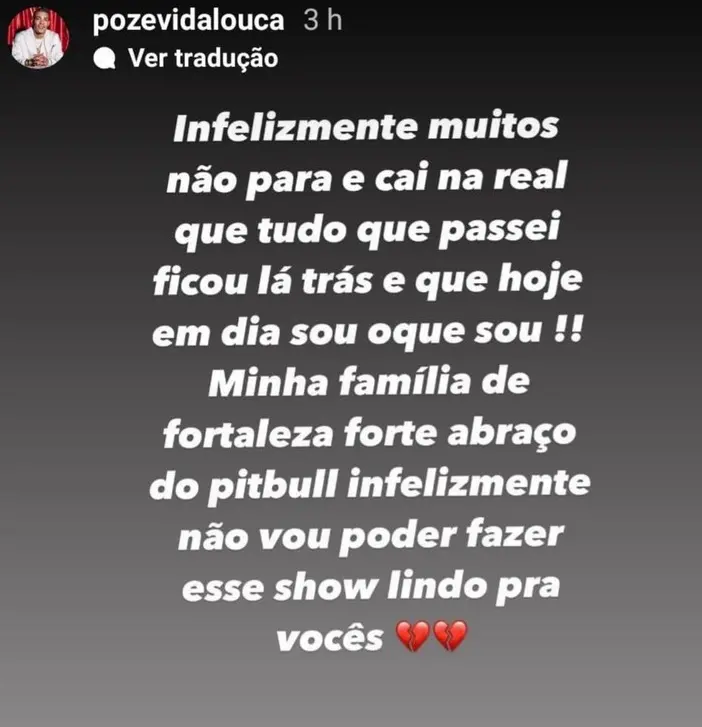 Nas redes sociais, MC Poze do Rodo – que seria uma das principais atrações da festa e chegou a gravar pequenos vídeos durante a chegada à capital cearense – se pronunciou sobre o caso: "Minha família de Fortaleza, forte abraço do Pitbull. Infelizmente, não vou poder fazer esse show lindo para vocês", lamentou.